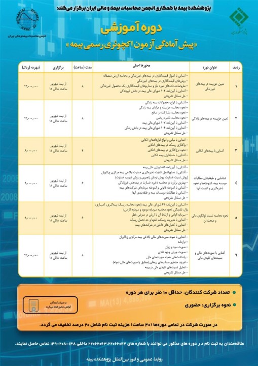 دوره‌های آموزشی «پیش‌آمادگی آزمون اكچوئری رسمی بیمه»